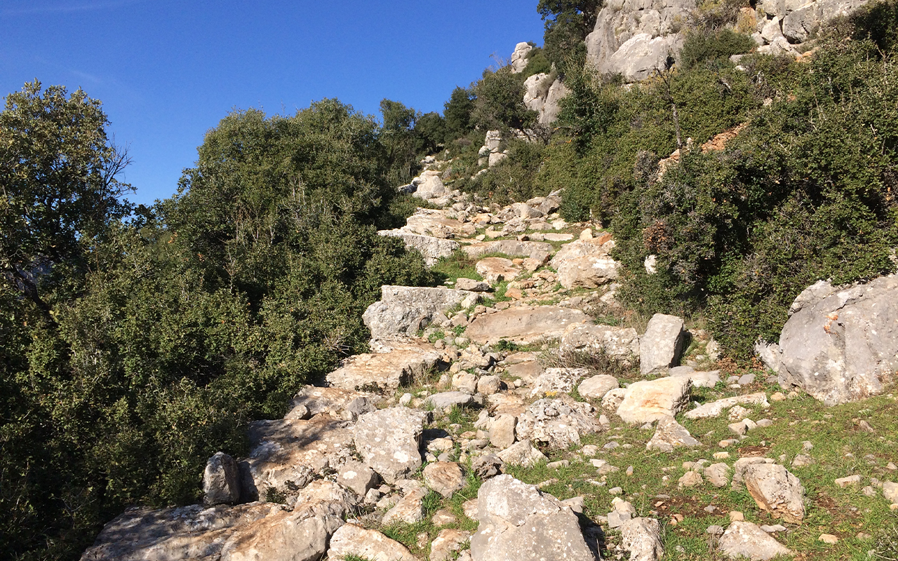 Günümüzde çobanlar tarafından yaya yolu olarak kullanılmaya devam edilen antik yol batı yamaçtan belirli bir eğimi sağlayabilmek için zig zaglar yaparak tırmanmaktadır. Zig zaglar arasındaki eğim ortalama %19’dur. Bu eğim yaya ve hayvan ulaşımı için kabul edilen maksimum eğimdir. Tırmanmaya başladıktan sonra yolun her bölümünde aynı orandaki eğimin tutturulması, yol yapımında belirli bir eğim hesaplamasının yapıldığını göstermektedir.