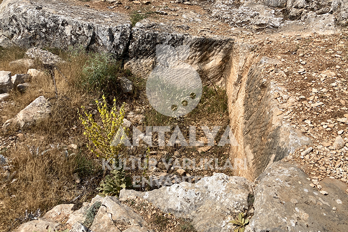 Anakaya’ya oyularak yapılmış, günümüzde kapağı bulunmayan lahit.