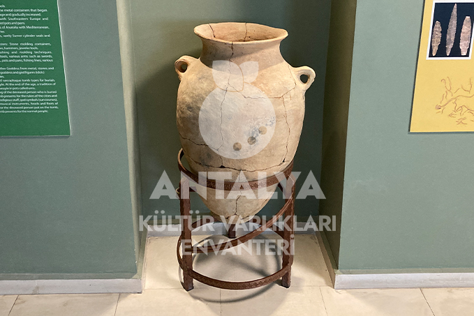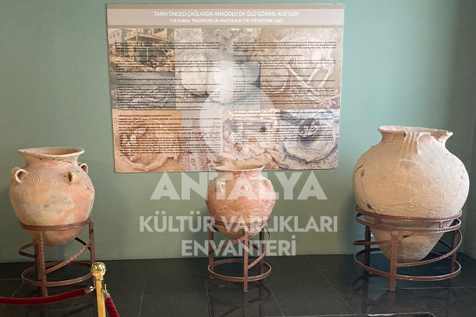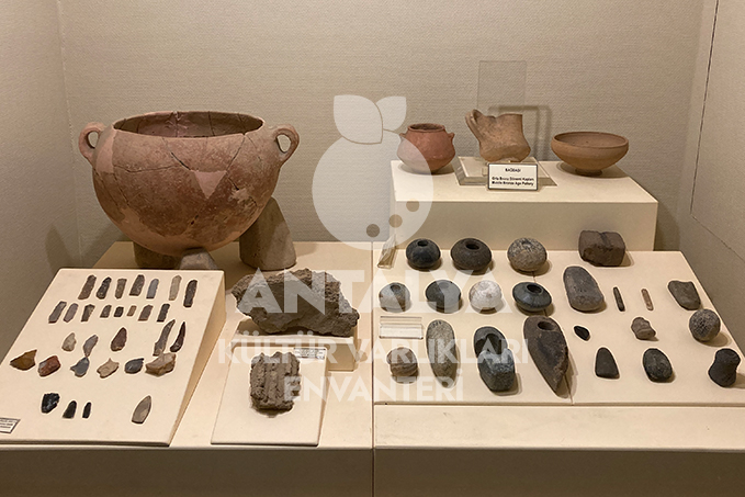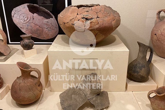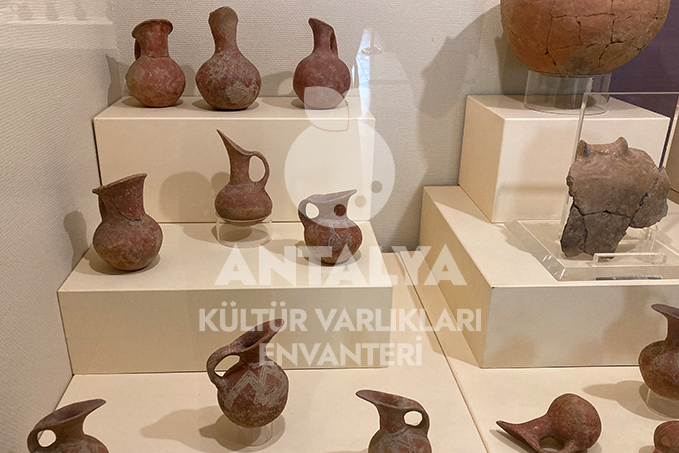 Müzenin giriş katındaki teşhir salonlarında, Elmalı çevresindeki höyüklerde keşfedilen buluntular yer almaktadır. Geç Kalkolitik çağ’a ait Bağbaşı eserleri ile Karataş-Semayük kazılarından elde edilen İlk Tunç çağı eserleri; mezar ve depolama kaplarından seçilmiş örnekler bu katta sergilenmektedir.