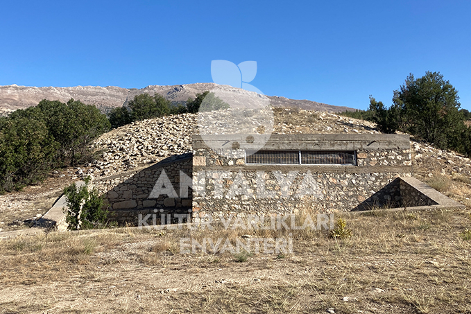 Mezar odası; doğu-batı konumunda, dikdörtgen planlı ve tümü geniş kalker bloklardan inşa edilmiş olup güney ve kuzey duvarlar dikey, batı duvar ise yatay birleşen iki büyük bloktan meydana gelmiştir. Yapı 3,00 x 2,61 m ölçülerinde olup içten yüksekliği 1,95 m, dıştan ise 2,66 m’dir.