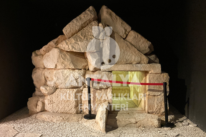 Geniş kalker bloklardan pseudo-poligonal teknikte inşa edilen mezar odası dikdörtgen planlıdır. Odanın boyutları doğu-batı doğrultusunda 2,45 m, kuzey-güney doğrultusunda 2,00 m; üçgen tavan yüksekliği ise 2,30 m’dir.