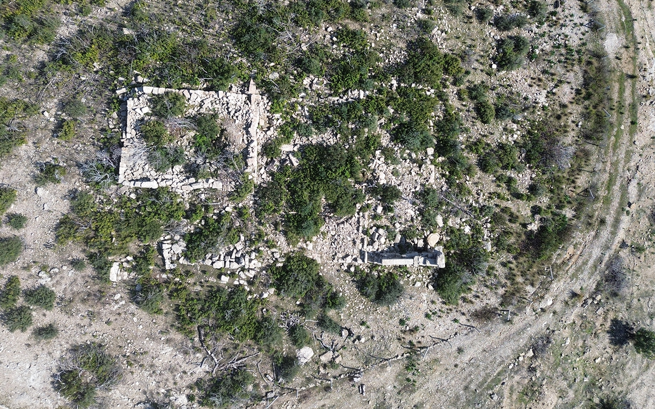 Dikdörtgen planlı yerleşim yöresel kumtaşı ve konglomera (güllü mermer) oluşumlu blok taşlardan inşa edilmiştir. Yapıya girişi sağlayan kapı kısmen günümüze ulaşmıştır. Yoğun tahribata uğramış yapı kompleksinin iç mekânları günümüze ulaşmamış olup, gözetleme kulesi olarak inşa edilmiş dikdörtgen plandaki mekânın temel kalıntıları görülebilir durumdadır. Yapıya girişi sağlayan ana kapının önünde kum taşından yapılmış yarısı kırık durumda bir zeytinyağı sıkma/pres taşı bulunmaktadır.